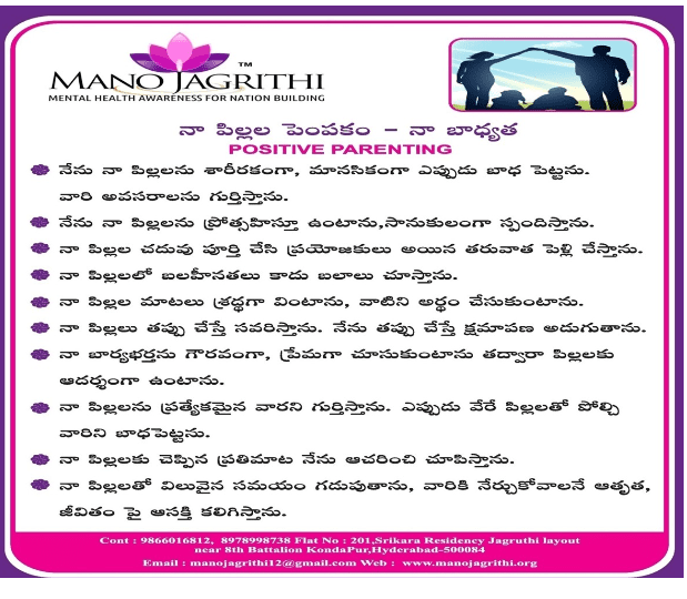 Mano jagrithi working for inculcating the parenting skills so that parents can solve the children problems. About 40,000 group of parents were covered through this programme. Almost 1000 parents are motivated.We have whatsapp groups of nearly 600 parents and benefactors who receive regular updates on parenting, motivational quotes and tips, materials for better parenting, related videos, and many more. We also conduct training programs for parents to give their children a positive environment to grow.