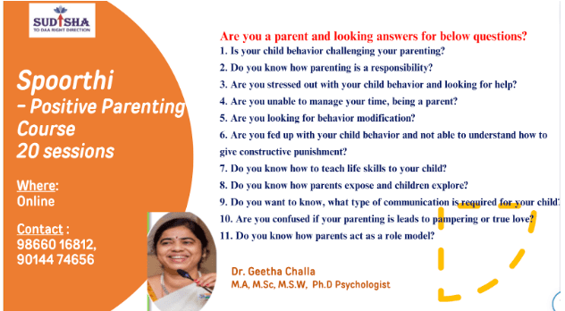 Dr Geetha Challa, in collaboration with the Social Welfare Department of Telangana, released 10 different videos on different parenting techniques and awareness for parents.Manojagrithi has also made a record by counseling the maximum number of parents at a time in “INDIA BOOK OF RECORDS”.
